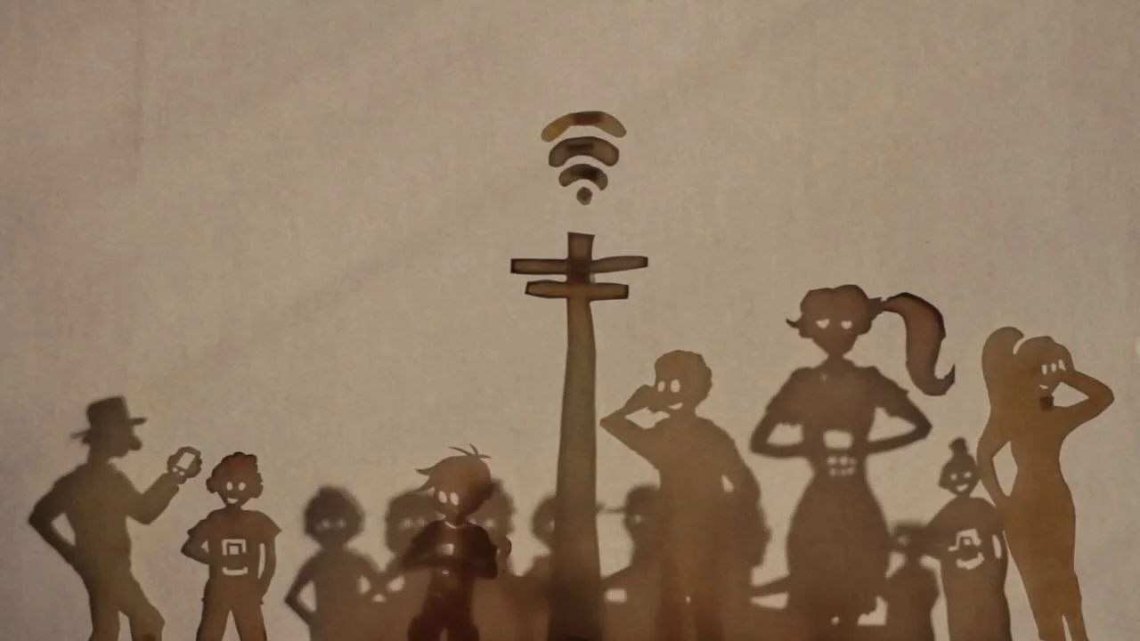 WiFi (DIR/SCR/PROD Douglas Alonzo. HONDURAS, 2016, color, 3:52) Comedy. A näif, frenzied collage spoken in gibberish by shadow puppet figures captures our visceral dependence on technology, particularly our smart phones. A small high-definition screen tells is what to do and where to go, turns us into spectators of a reality often best ignored and show us the power we have when we use it to denounce and document like historians in real time. The price is extended loneliness.